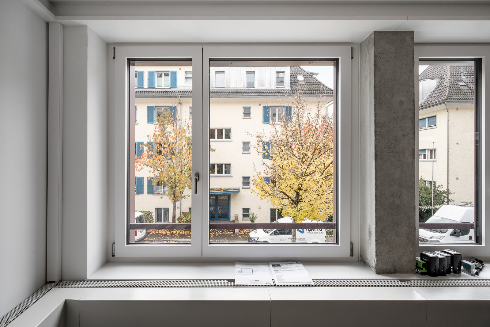 Im Zuge der energetischen Sanierung der Gebäudehülle wird jede zweite Fensterstütze entfernt, was die Belichtung verbessert, den Innenräumen eine neue Qualität verleiht und die Fassade offener und ansprechender wirken lässt.